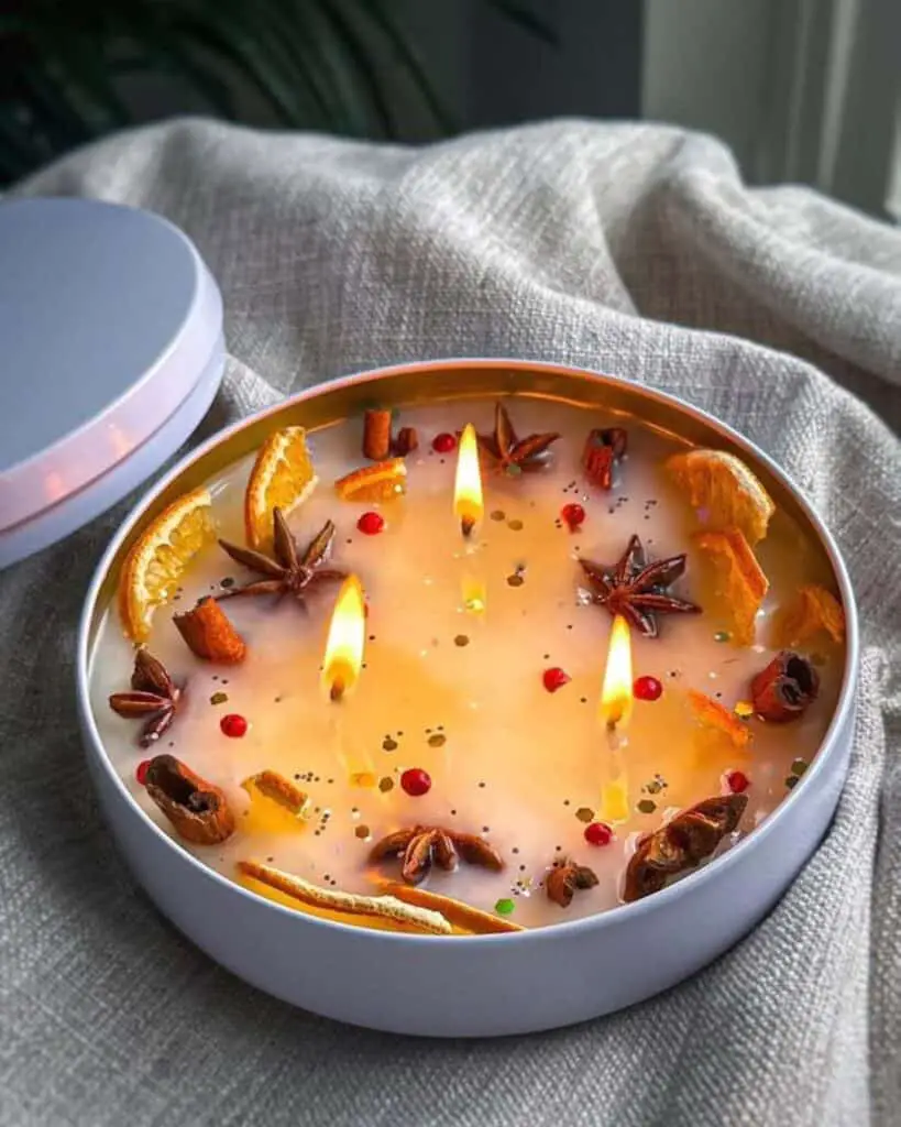 Las velas caseras con fragancias cálidas y especiadas son irresistibles en otoño. Personalízalas con recipientes decorativos y etiquetas hechas a mano.