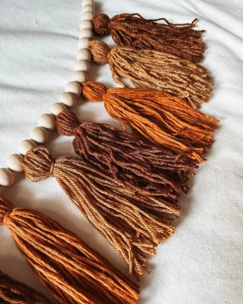 - Fieltro, cuerda, yute y tela en tonos naranjas, marrones y ocres.