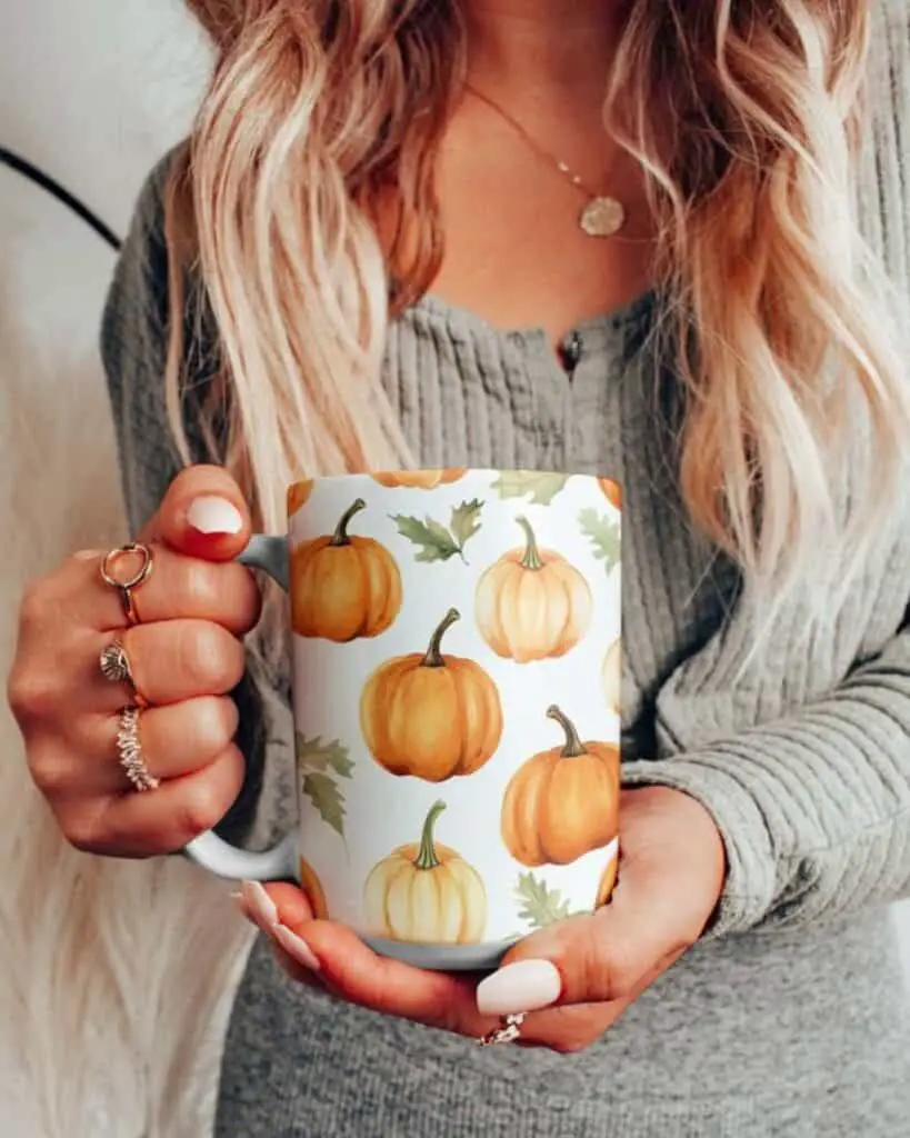 Diseña tazas únicas con mensajes como “hola otoño” o “pumpkin lover”. Usa pintura para cerámica y ofrece sets personalizados.