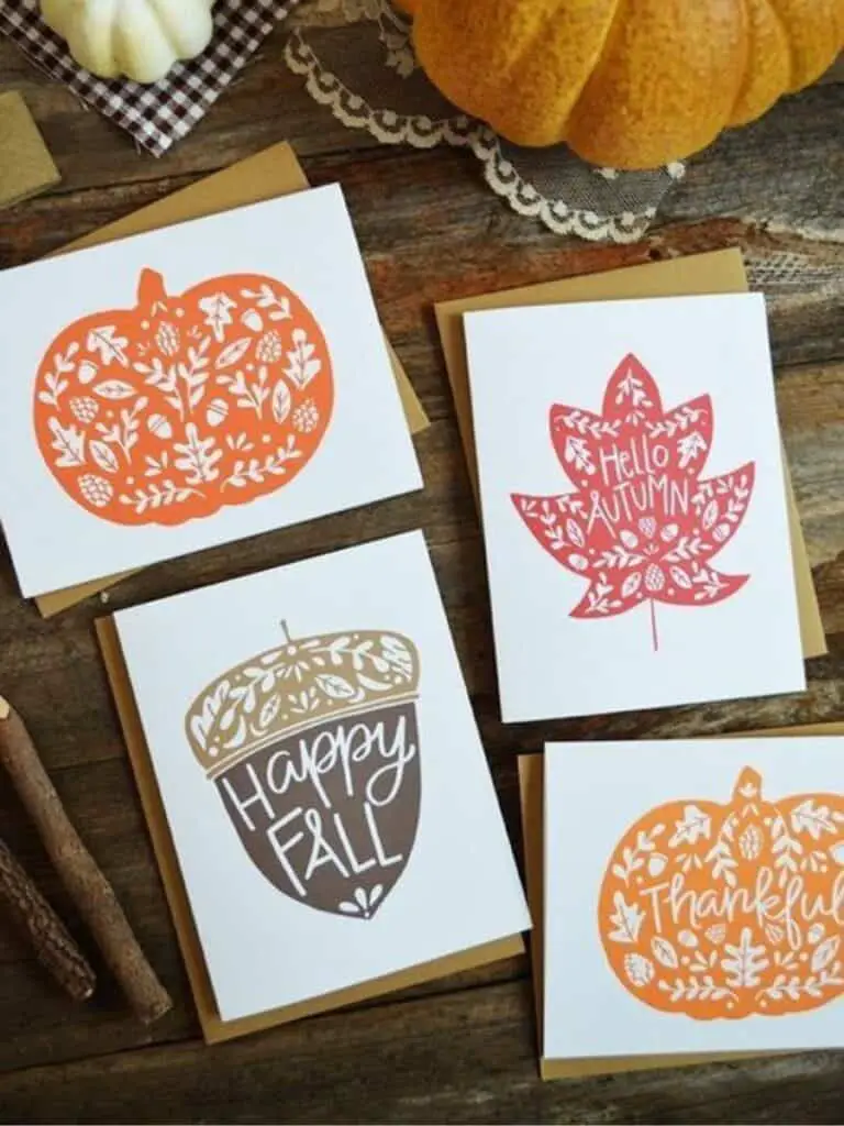 Crea tarjetas únicas para Acción de Gracias, Halloween o simplemente para dar la bienvenida al otoño, usando cartulina, sellos y detalles hechos a mano.