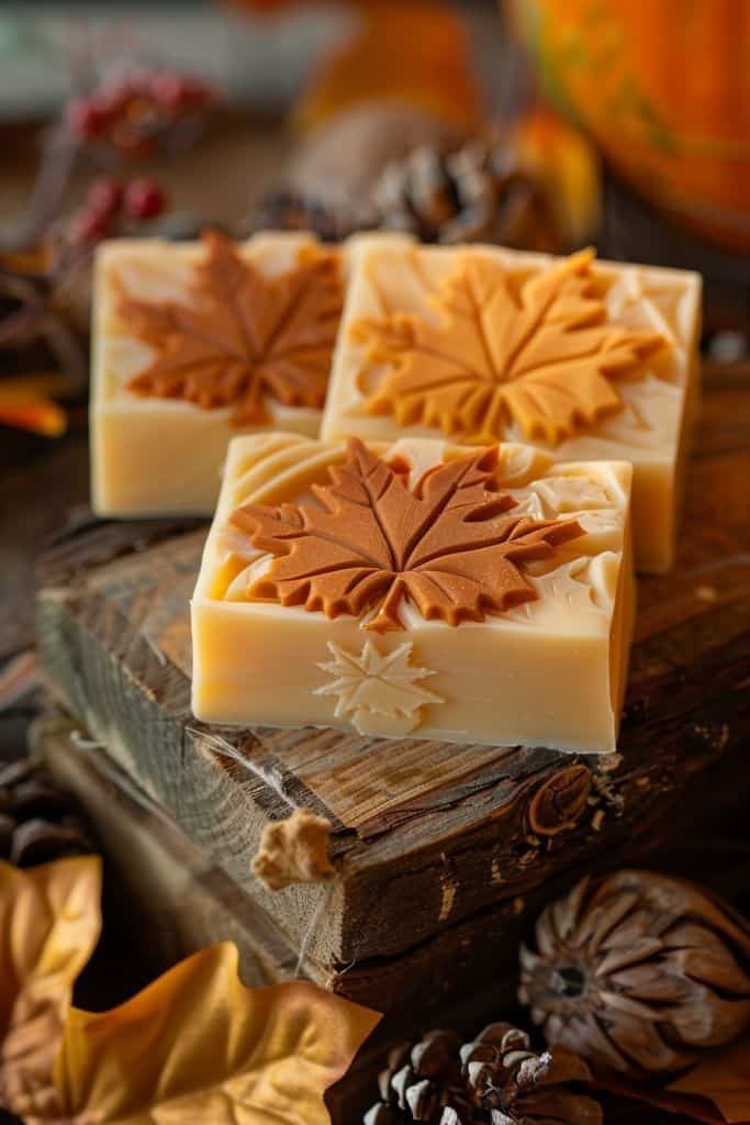 Haz jabones naturales con aromas como canela, clavo o manzana verde. Puedes moldearlos en formas otoñales y empaquetarlos con encanto.